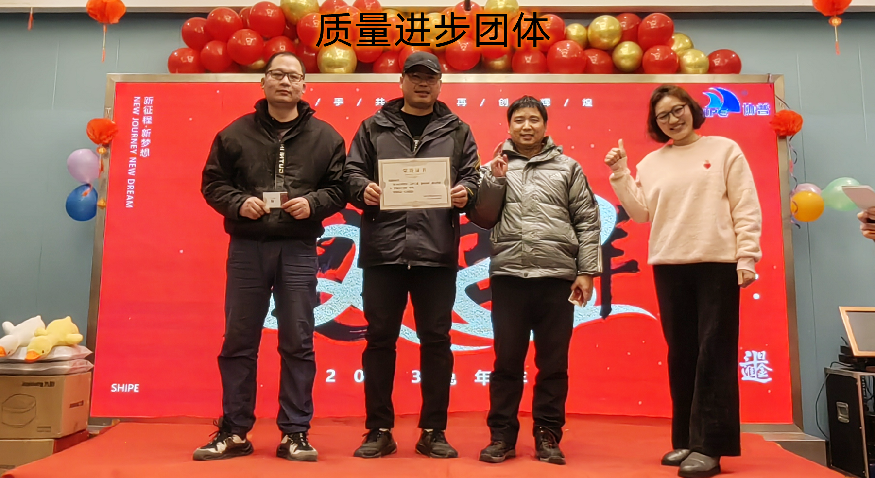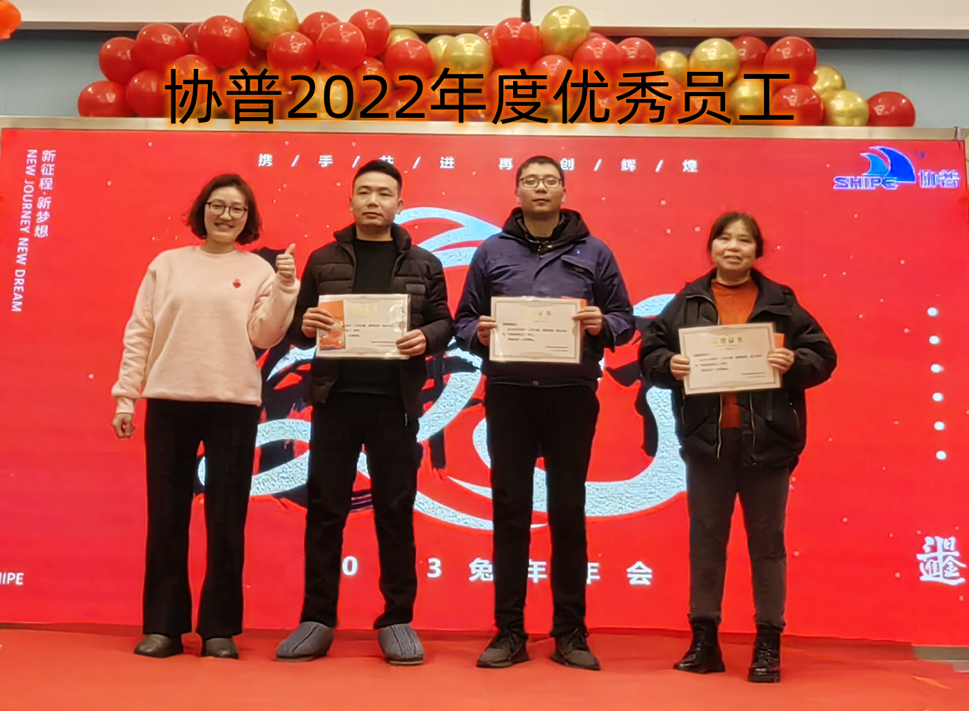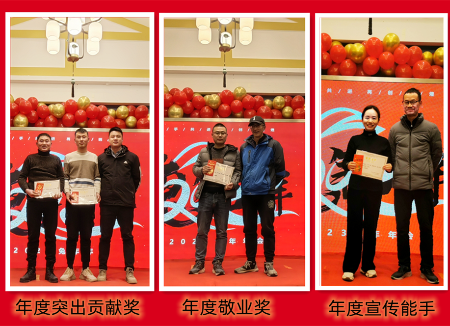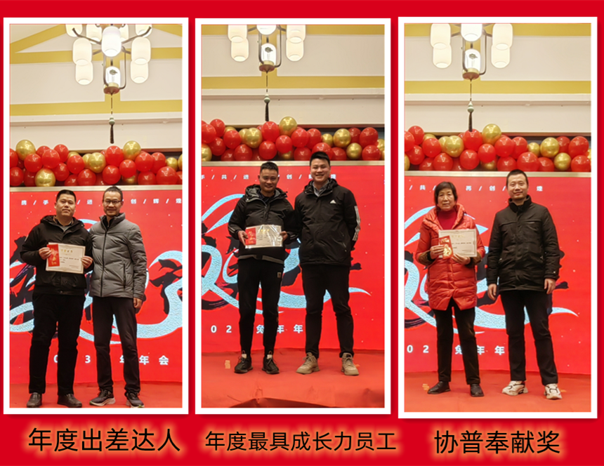 趙總致辭后,公司為2022年度表現(xiàn)優(yōu)異的團隊和個人進行了表彰。人才是公司生存和發(fā)展之本。公司發(fā)展的每一步都離不開每個協(xié)普人的努力和付出。本年度公司共評選出三名優(yōu)秀員工——陶?;顒?、徐金鳳,“2022年度突出貢獻獎”——張傳東、桂佳俊,“2022年度敬業(yè)獎”——陳阿龍,“年度宣傳小能手”——宋玉秋;“協(xié)普年度出差達人”——胡金龍,“年度最具成長力員工”——王傳銀,“5S進步團體”——技術(shù)部、車間鉚焊班,“質(zhì)量進步團體”——質(zhì)量部,“協(xié)普奉獻獎”——劉庭玉。