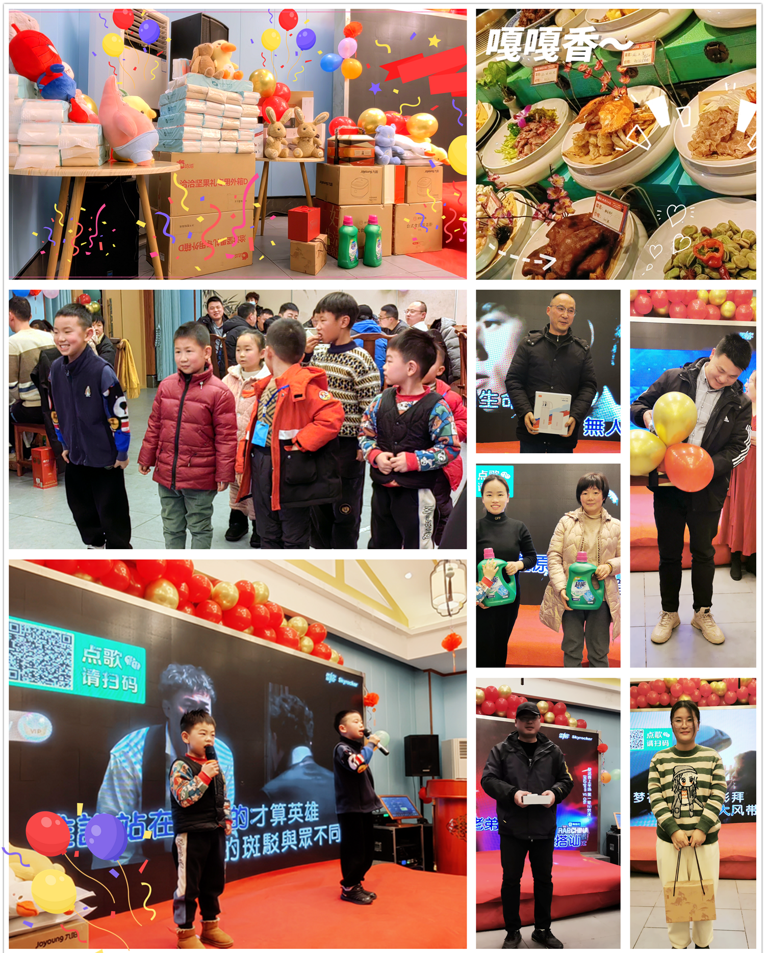 年會最激動人心的莫過于幸運大抽獎, 本次年會抽獎公司準備了一批精美的生活電器禮品禮盒,還有暖心的生活家居用品、可愛的布偶娃娃,伴隨著抽獎和各項小游戲,開始了年會的晚宴環(huán)節(jié),以此來答謝各位協(xié)普家人一年來的辛勤工作與默默付出。大家聚在一起,舉杯歡飲,共襄盛舉。更有協(xié)普小朋友們的熱情暖場,現(xiàn)場氣氛熱烈,歌唱聲、嬉戲聲、祝福聲、碰杯聲此起彼伏......